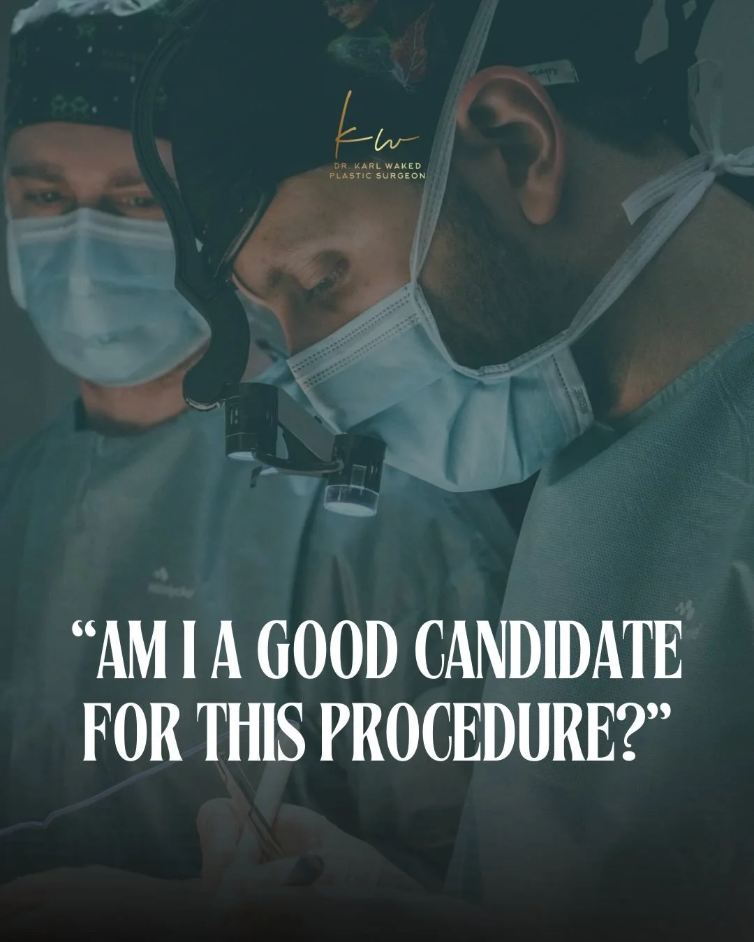 I am Dr. Karl Waked, a certified plastic, reconstructive and aesthetic surgeon. I completed my residency at the renowned plastic surgery department of the Brussels University, with additional international training in Paris, Munich, and Marbella.